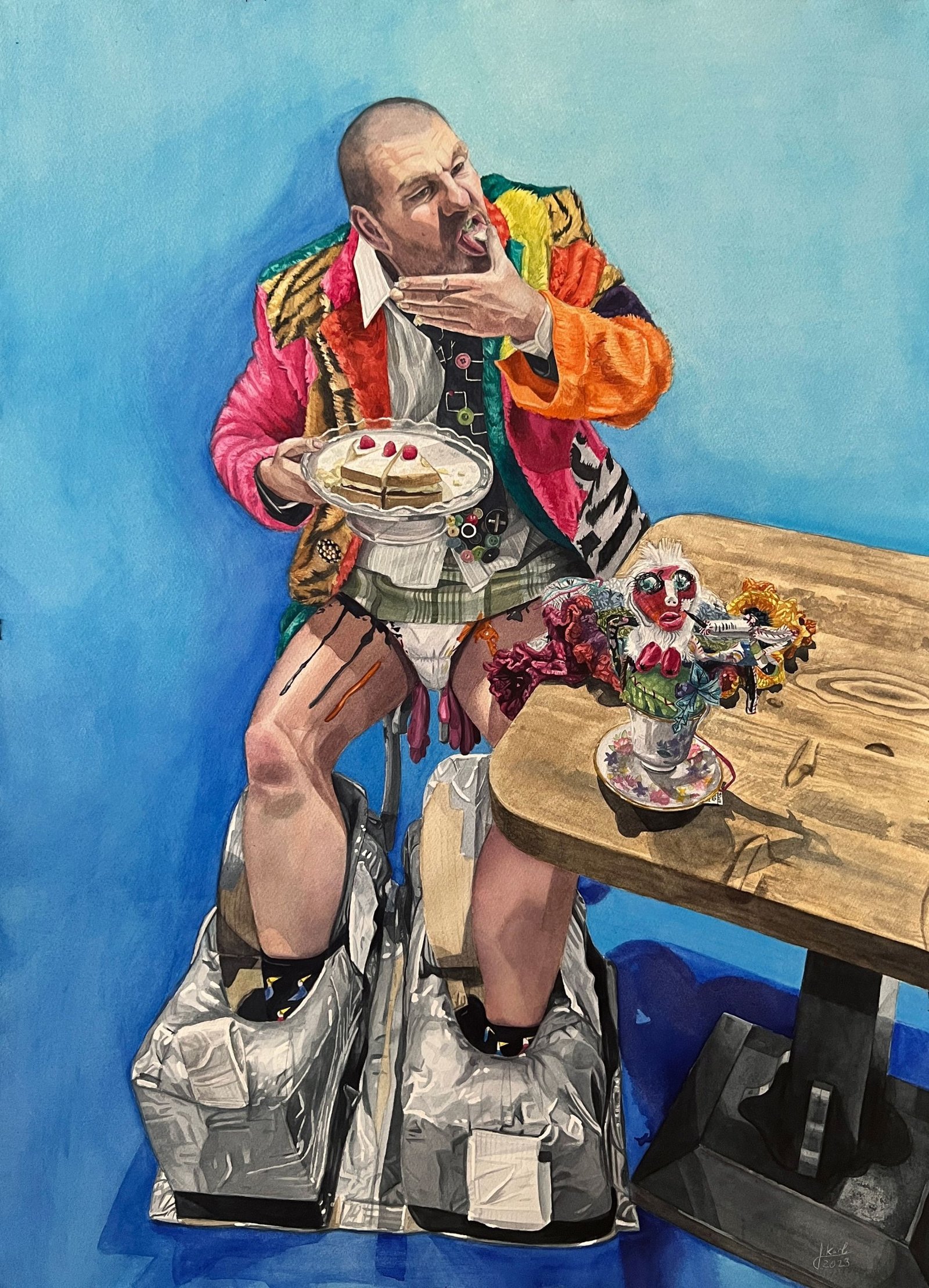 Whilst you laugh, I will eat a cake. Portrait of Artist Joshua Raffel.